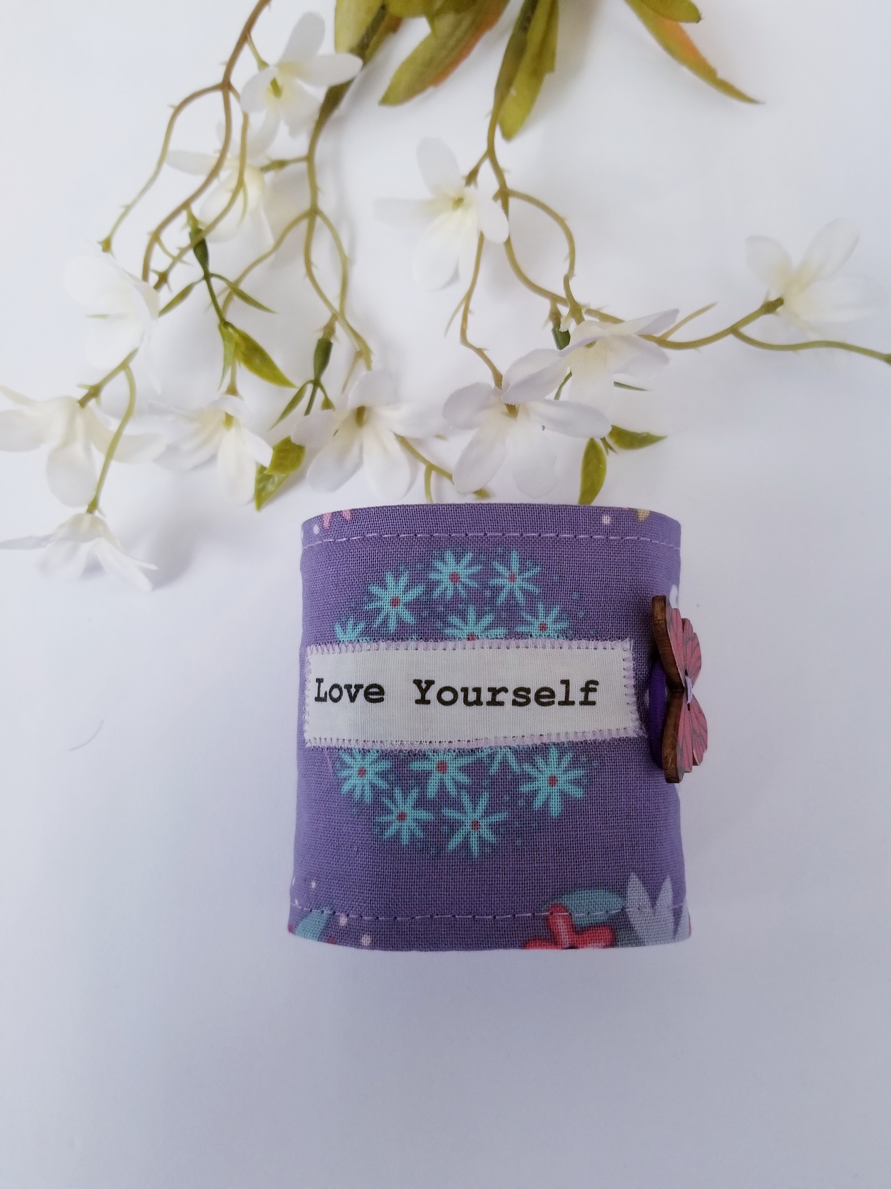 I find a good way to alleviate stress, anxiety and depression over Covid times is to create. My head has been filled with so many ideas that I don’t have enough time in the day to implement them. Then I want to share with friends, but then think, “Ah no, they do not want to hear about my silly ideas!”, so I thought instead of keeping a journal why not just record them in a blog. The creations are in no particular chronological order as I am not that organized with writing everyday. This is a start for me. I will start with something I am most excited about, healing bracelet wrist cuffs. It has multiple uses, one of which is they keep the wrist warm, they are fun to look at, and they serve as an inspirational or prayer reminder. They are also fun to make. These ones are simply embellished with some stitching and butterfly buttons.